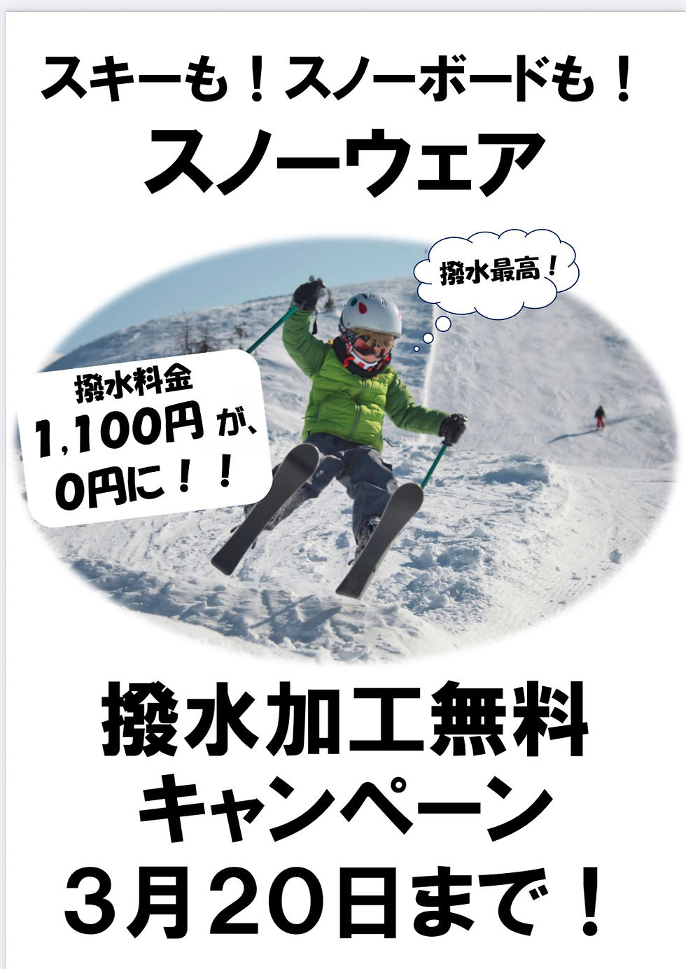 ただいまクリーニングイノウエでは、スノーウェアの撥水加工が無料でおうけ頂けます🤩✨